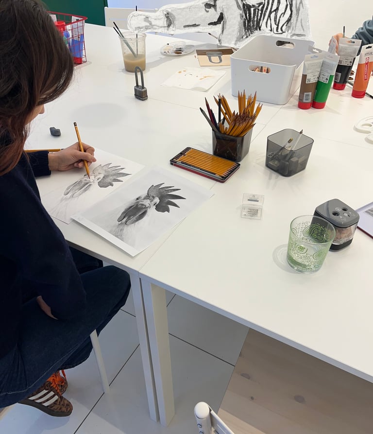 People come here to draw, paint, experiment, and slowly build their own relationship with art.